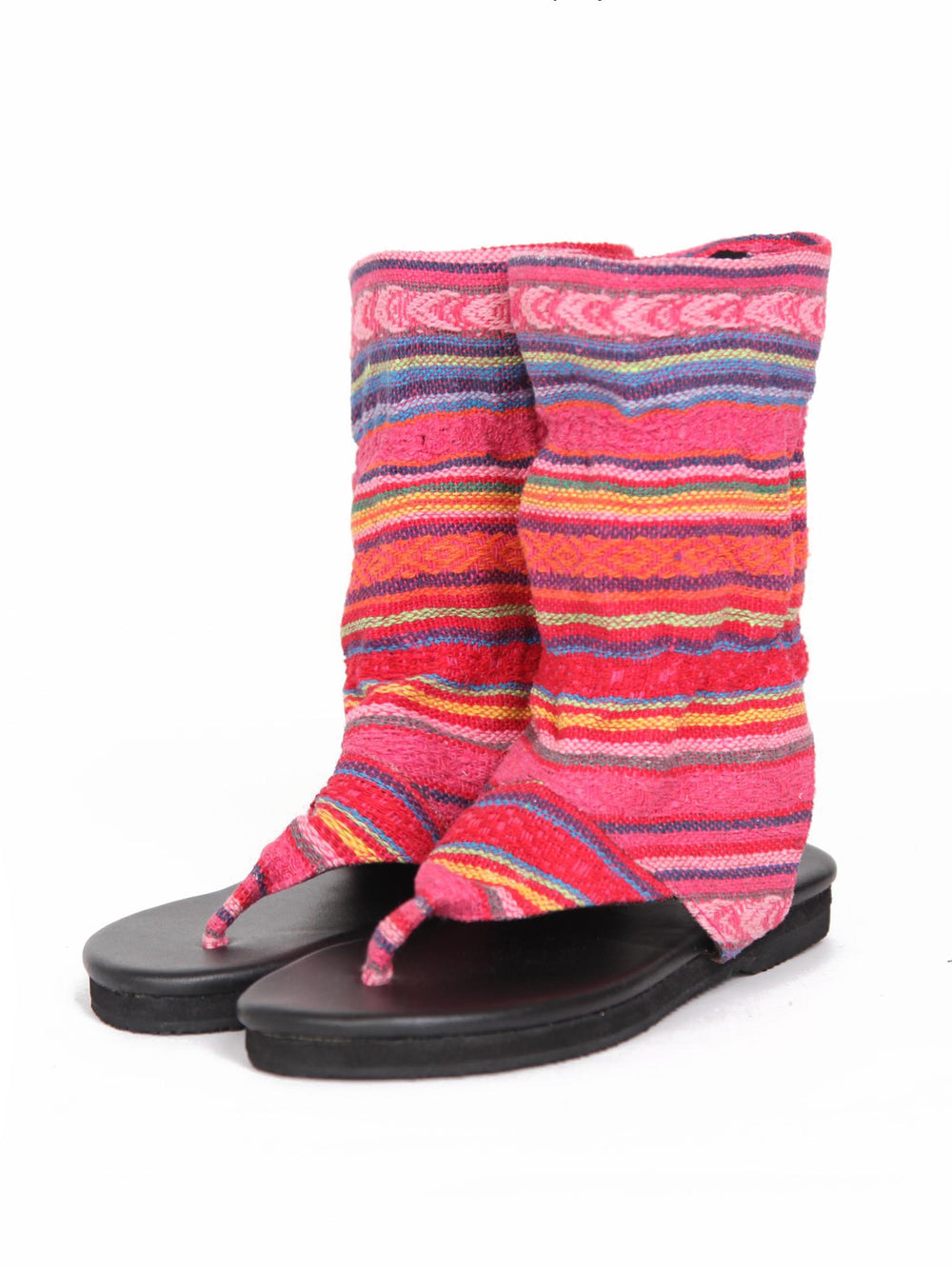 This Flat Boho Booties Sandal uses a woven tribal pattern fabric, bursting with colors on a white background. It’s a statement piece for those vibrant spring and summer days. The flat heel is super comfortable, while the sandal style bootie upper increases ventilation. These are just as functional as they are beautiful.