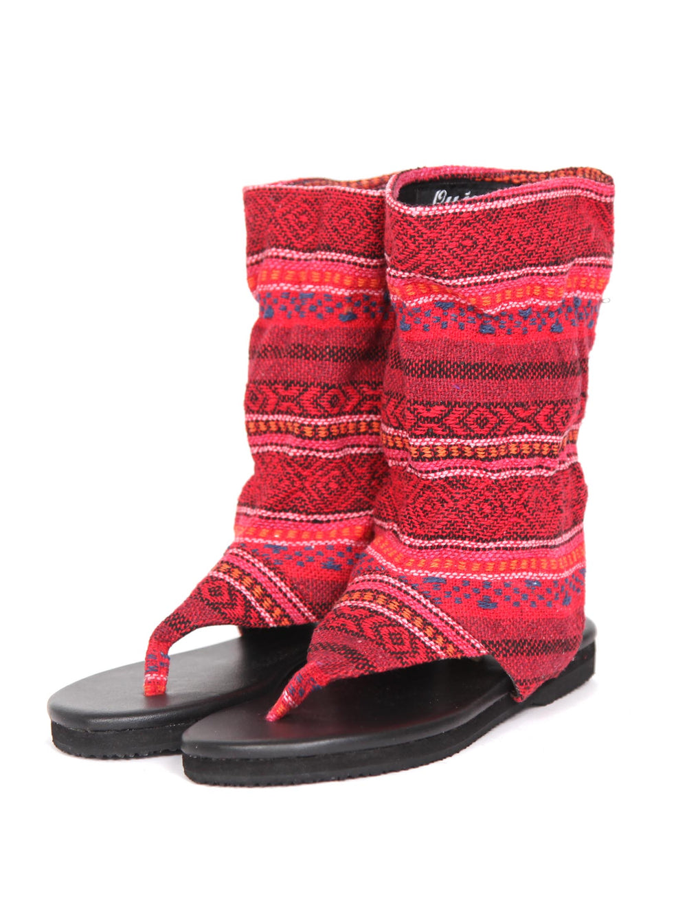 This Flat Boho Booties Sandal uses a woven tribal pattern fabric, bursting with colors on a white background. It’s a statement piece for those vibrant spring and summer days. The flat heel is super comfortable, while the sandal style bootie upper increases ventilation. These are just as functional as they are beautiful.