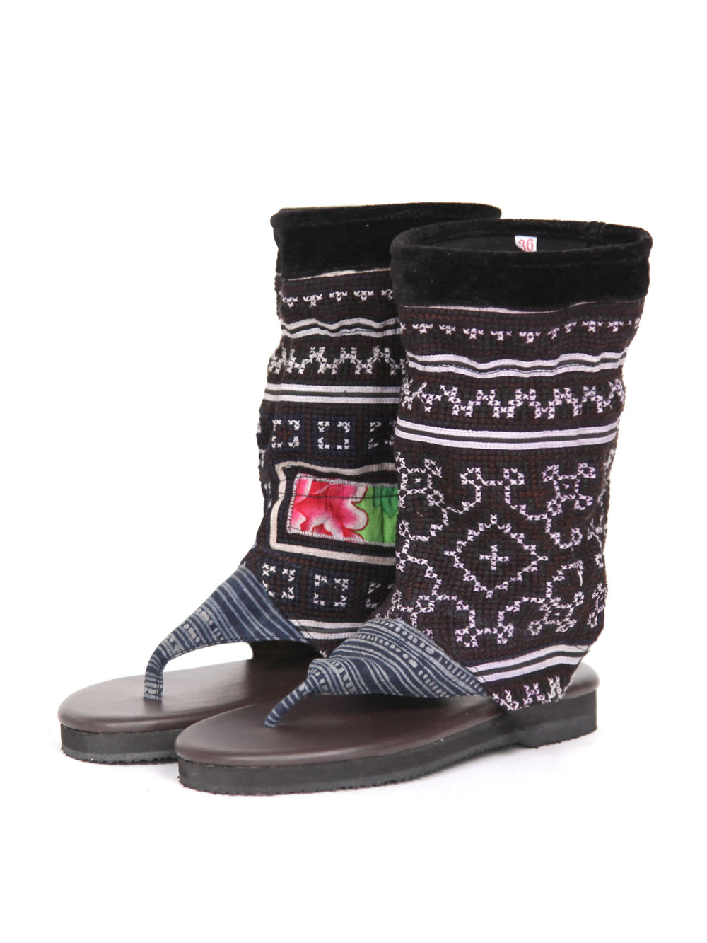 Vintage Hmong Tribal Print Flat Bootie Sandal | Black Hmon