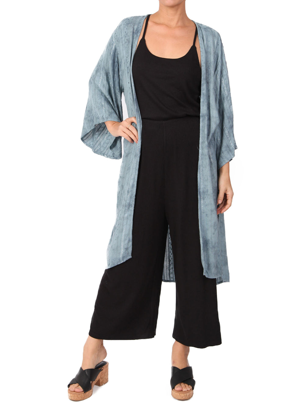 This cute and stylish kimono is fit for swimsuit cover-up or wear it as loungewear at home, or over a tee and denim shorts to run your errands in style. Designed with a detailed knit pattern with lamé, and comfortable loose fit. Features include wider sleeves and slit sides.