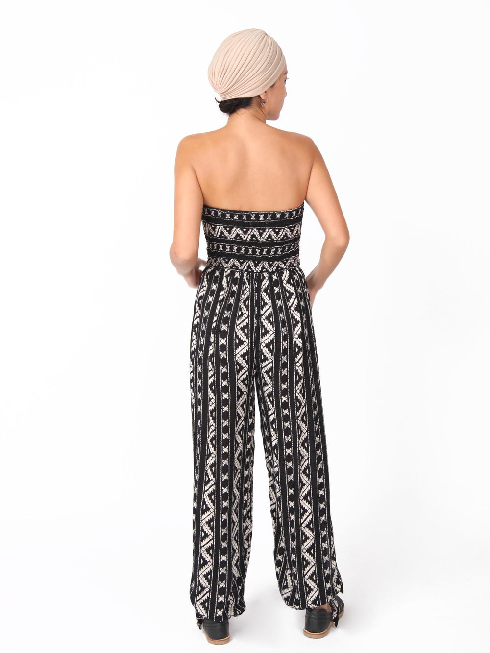 Halona Strapless Smocked Printed Tube Jumpsuits