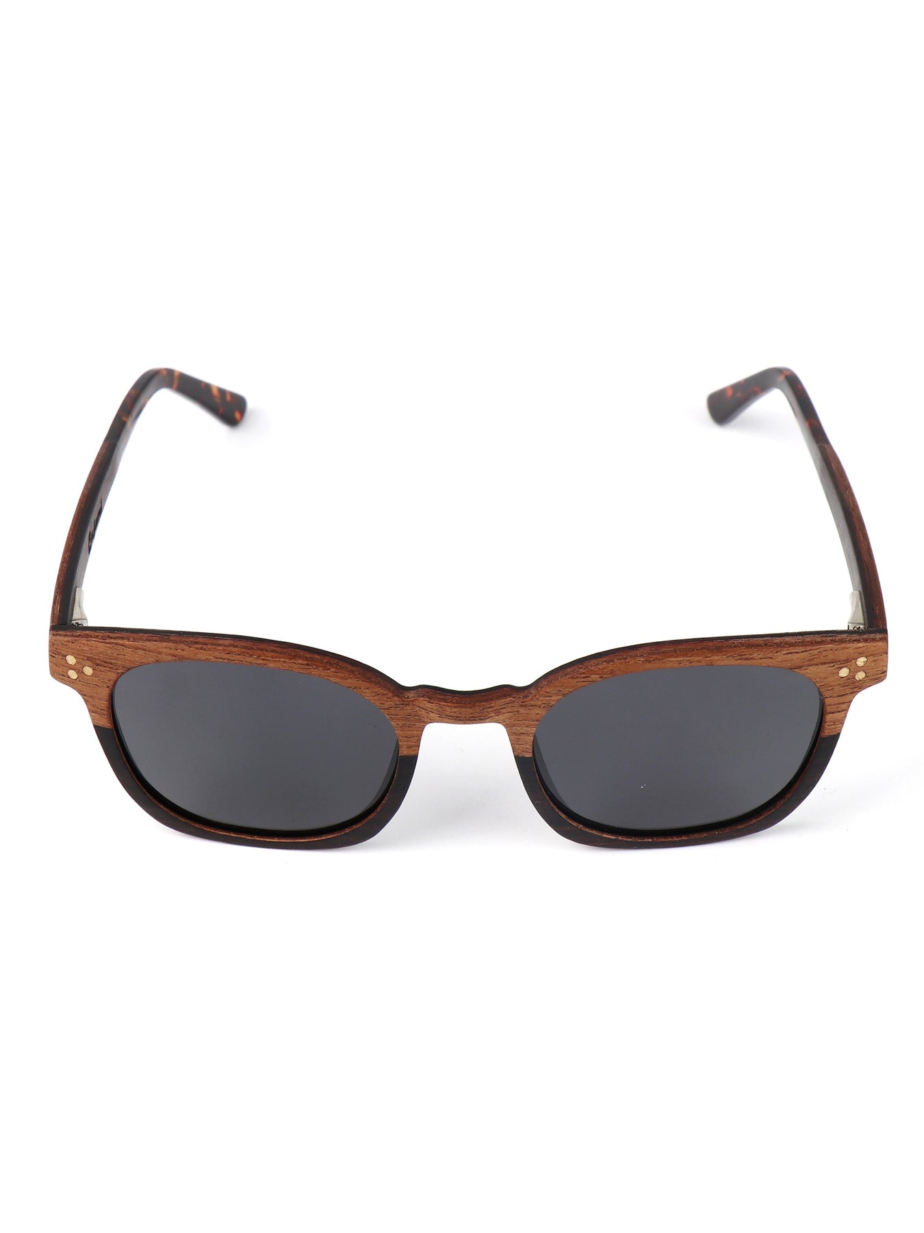 The upper part of the frame is crafted from warm teak wood, while the lower part transitions into deep, elegant ebony wood. This dual-tone design gives the sunglasses a trendy, fashion-forward vibe—effortlessly balancing earthy tones with a sleek silhouette.