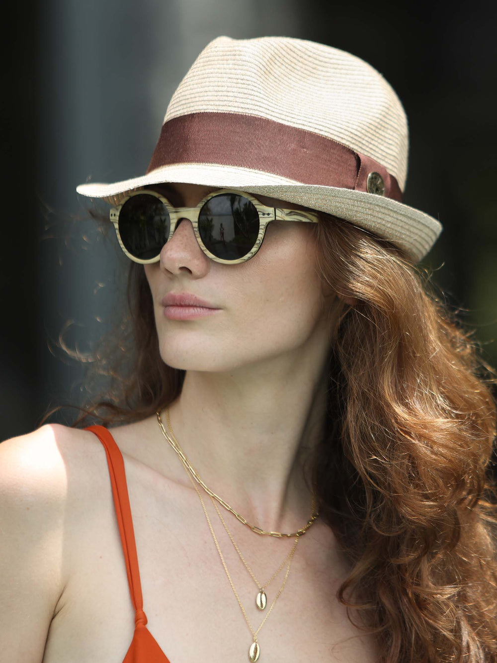 The "Kai" Wooden Sunglasses, where nature meets style in a truly unique and captivating way. These sunglasses feature a design element that sets them apart—a zebra frame color that adds a touch of boho flair and ensures an unparalleled and one-of-a-kind look.